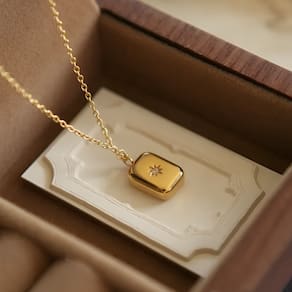 O pingente quadrado, meticulosamente trabalhado, serve como uma tela perfeita para destacar a estrela esculpida no seu centro. Esta estrela, um símbolo universal de direção e esperança, é cuidadosamente centrada no pingente, chamando a atenção para o seu design único e atraente.