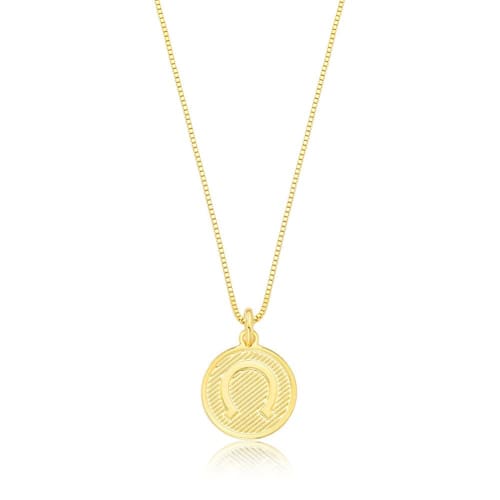 Nosso Colar foi elaborado com uma medalha de ferradura com texturas, acompanhada de uma corrente clássica veneziana Revestida em Ouro, garantindo beleza e conforto, ideal para o dia a dia.