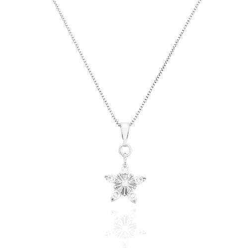 Colar Flor Com Zircônias Cristais Banhado a Prata