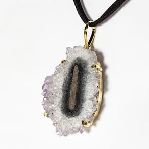 Encante-se com a magia do Colar Flor de Ametista. Sinta a energia da transformação e proteção desta pedra preciosa em seu dia a dia.