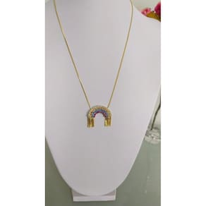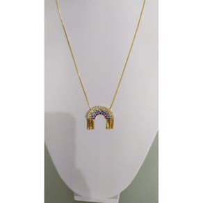 Colar folheado arco íris Colar arco íris é rico em detalhes, designer único e cheio de belezas. Ele é um colar folheado em ouro, com pedrinhas coloridas em zircônia, franja em dourado, simplesmente belíssimo Colar queridinho pelas grandes blogueiras, pode ser Utilizado com várias composições, super estiloso e romântico, deixará seu look lindo e super na moda. Ficha técnica - Tipo de fecho: Mosquetão - Unidades por embalagem: 1 - Cor principal: Dourado - Material do pingente: Ouro - Com pedras: Sim - Idade: Adultos - Largura: 3 cm - Tipos de pedras: Zircônio - Estilos: Assimétrico - Fonte do produto: 5 g - Comprimento: 26 cm - Gênero: Sem gênero