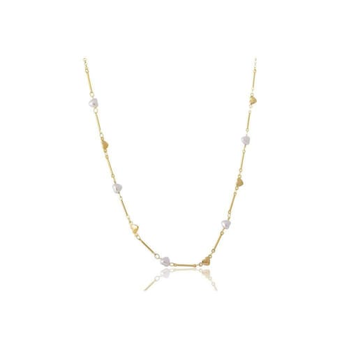 O colar com pérolas de coração é aquela peça romântica e única. Folhado em Ouro 18k, é um acessório apaixonante, com um ar sofisticado e super delicado. Essa peça promete elevar suas composições do mix pessoal para um nível superior, fazendo com que você se sinta completa e marque presença onde estiver. Use e abuse da sua criatividade para combinar esse colar com outras peças elegantes e seja livre para mostrar a sua essência.