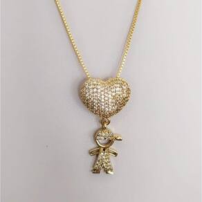 Colar folheado menino - marca Belíssima moda e acessórios - descrição Colar folheado menino Esse colar, é aquele modelo que é impossivel não se apaixonar. Colar dourado com pingente que representa um menino, todo crajedado, é uma peça diferenciada e encantadora. Quem tem filho a sabe o quanto esse modelo simboliza o amor de mãe, que é infinito Também é uma ótima opção para presentear quem você ama. Informações técnicas Material : zamac Cor: dourado Altura: 1 cm Largura: 1,5 cm Comprimento: 28 cm Peso: 3 gramas