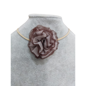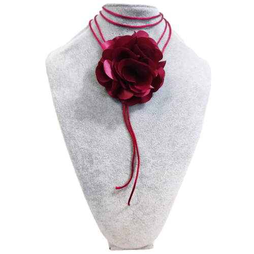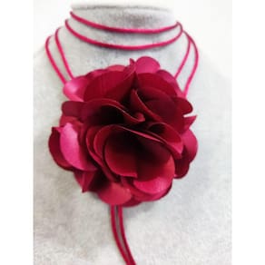 Gargantilha choker de flor de tecido é um acessório elegante e delicado que fica justo ao pescoço. Ele é feito de um tecido macio e confortável, com flores adornando a peça. É uma opção versátil para complementar um look atual que é ultima tendência da moda em acessórios.