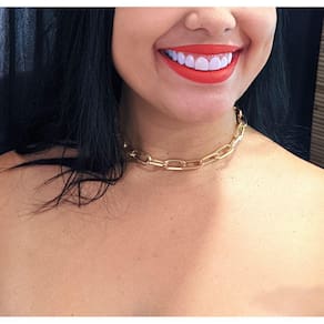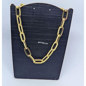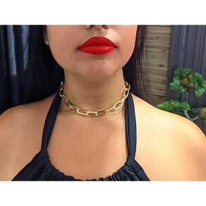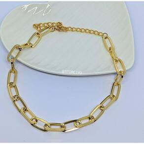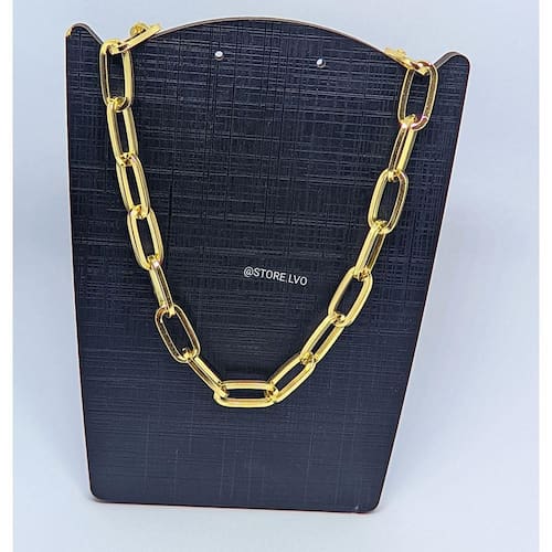 Colar Choker Feminino Elo retangular Folheado Ouro 18k Corrente Grande Grossa Inspiração Blogueira Luxo Tendência
