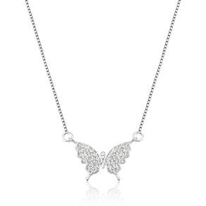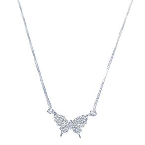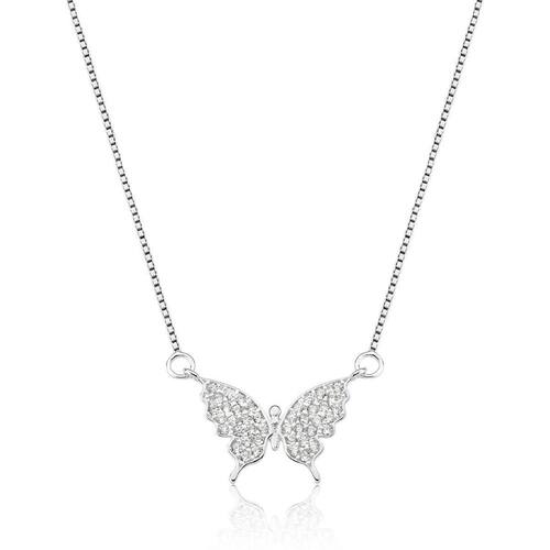 Gargantilha malha veneziana em prata 925 com pingente borboleta 24 pedras de zircônia - anti alérgico