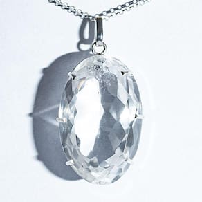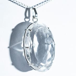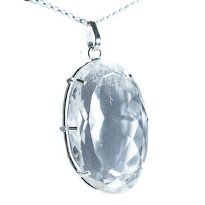 Colar Gigante Cabochão oval Cristal Natural Boa qualidade, pedra natural de garimpo, lapidação artesanal Montado com Garra e Presilha na Prata 950, ideal para colares e pulseiras Acompanha também colar de prata 925 no estilo corrente com elos ovais Perfeito para se adequar a qualquer estilo por ser uma peça que denota requinte e sofisticação O colar tem um peso relativamente leve, que não incomoda ao usar por longos períodos O produto vem acompanhado de um portajoia para manter seu colar sempre protegido