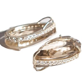NOME DAS PEDRAS: Quartzo Fumê COR DAS PEDRAS: Marrom Suave (Foto Ilustrativa) CORTE DAS PEDRAS: Gota Facetada CLARIDADE DAS PEDRAS: Brilhoso e Semi Transparente MEDIDA DAS PEDRAS: 28mm x 15mm (medidas aproximadas) PESO TOTAL DA JÓIA: 42 Quilates Aproximadamente (Varia de acordo com o estoque) MONTAGEM: Garra Prata 950 ORIGEM: Montagem Curvelo MG Por ser pedra natural, podem apresentar variações em suas tonalidades e grafismos. Há também a possibilidade de ocorrerem pequenas inclusões que irão se assemelhar a fissuras, mas que são normais de minerais autênticos de garimpo. Hidratação com óleo mineral.