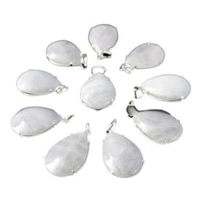 Pingente Gota Lisa Pedra Quartzo Leitoso Montagem na garra com perinha em Prata 950 para passar o cordão Pedra Genuina com origem garimpo lapidação e montagem manual