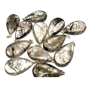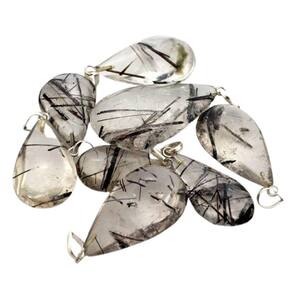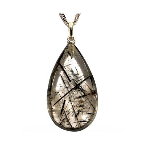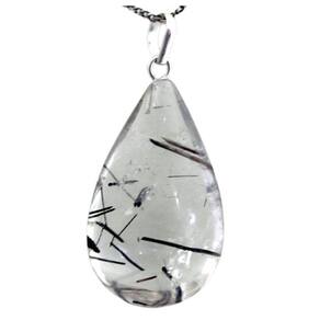 Pingente Gota pedra Cristal EXTRA incrustado Turmalina preta castoação Prata 950 ( PRATA DE LEI)