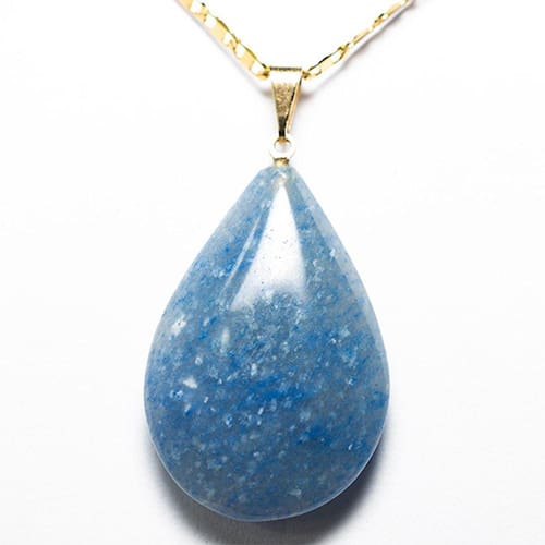 O colar gota quartzo azul dourado é uma joia deslumbrante que irradia serenidade e beleza. Perfeito para compor looks elegantes e refinados.