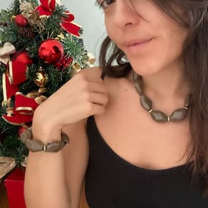 DESCRIÇÃO: Colar com pedras grandes na cor marrom e detalhes em dourado. O Colar possui um design moderno, é um acessório desenvolvido para mulheres que gostam de estar deslumbrante independente da ocasião. É a responsável por dar charme e sofisticação para o visual, combinando com qualquer estilo DADOS TÉCNICOS: Medida do comprimento do Colar 45 cm + extensor. CARACTERÍSTICAS: Qualidade premium, banhado e desenvolvido com alta tecnologia que garante maior durabilidade e acabamento impecável. Tornando-se um diferencial no mercado. : de 2 meses. Validação da compra. A não cobre defeitos causados por mau uso. DICAS: A Farida Nesi Design oferece a melhor qualidade de acabamento. Cuidados simples preservam a beleza de suas joias por muito mais tempo. Para manter o brilho e qualidade que não use durante o banho, prática de esportes, ou atividades domésticas. Evite contato com água, e produtos químicos. Não passe perfume ou outros produtos sobre a peça. Limpe com uma flanela seca e macia. Guarde com cuidado. Todas as peças acompanham mini sacos ideais para serem armazenados. Compre agora. Marca: Não Informado Ean: 7899472401261