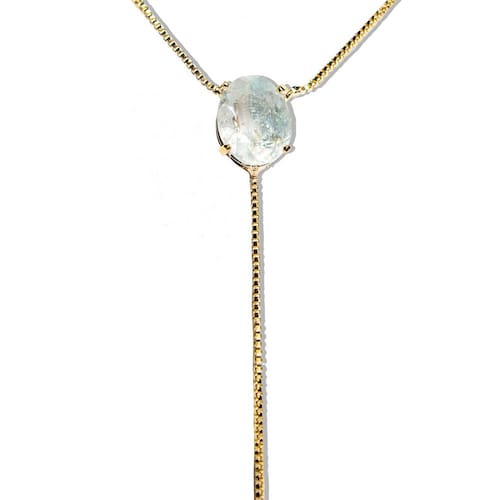 Gema Água-Marinha: Pedra natural de garimpo com tom azul esverdeado que transmite tranquilidade e sofisticação. Corte Oval Facetado: Lapidação artesanal que destaca a luminosidade e beleza da pedra. Dimensões: Pedra de 10x8 mm, corrente de 56 cm e comprimento total aproximado de 65 cm. Material Durável: Corrente dourada com acabamento refinado e fecho lagosta prático e seguro. Peso da Pedra: Cerca de 15 quilates, agregando presença e estilo.