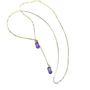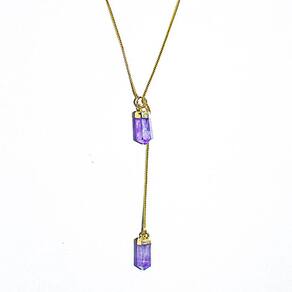 Colar gravata ametista dourado: elegância e sofisticação em um acessório único. Perfeito para complementar o look de forma sutil e charmosa.