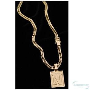 CORRENTE GRUMET DUPLO FECHO LATERAL DUPLO (7MM) & PINGENTE (LETRA) PERSONALIZADO (MEDIO) - BANHADO EM OURO 18K