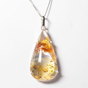 Colar Hematoide Com Dendrita 39mm Gota na Garra Prata 950, Pingente Gota Lisa Grande Pedra Especial Hematoide com Inclusão dendrita Natural de Garimpo Rarissima com Montagem na garra de Prata 950 com perinha para passar o corrente. Pedra Genuina com origem garimpo lapidação e montagem manual