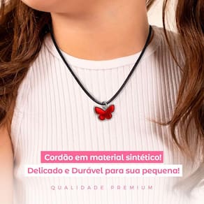 Características do produto: - cor: preto - ajustável para diferentes tamanhos - feito em materiais sintéticos duráveis - pingente em formato de borboleta, cor vermelha - pingente feito em metal, resistente e elegante - indicado para crianças a partir de 5 anos