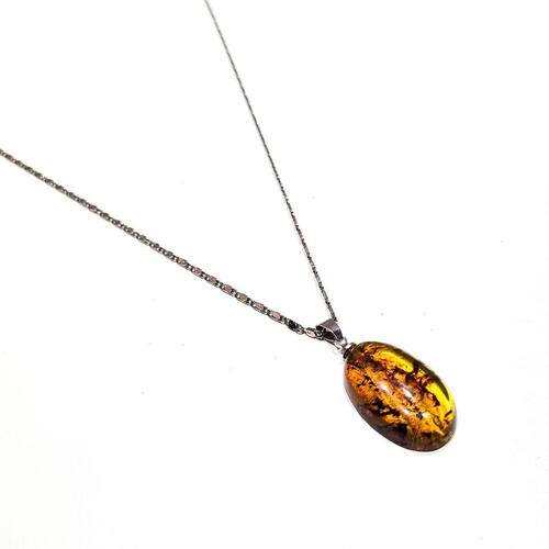 Colar feito com Âmbar Mexicano, detalhes em banho de prata 950. Peça trabalhada à mão. Pingente com aproximadamente 4cm. Confortável e leve, a corrente possui de 45cm de circunferência. Acabamento de qualidade. Peso: 15g Design exclusivo.