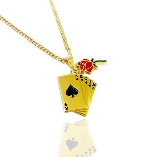 Colar Laroiê Maria Navalha Dourado-Baralho E Botão De Rosa