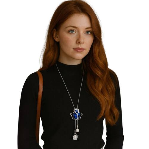 Colar Longo Flor Azul Pérola Festa Elegante é um acessório encantador que une sofisticação e estilo. Seu pingente em formato de flor com cristal azul facetado, envolto por detalhes prateados brilhantes, transmite requinte e personalidade. A pérola e o pingente floral pendente adicionam movimento e delicadeza ao design. Ideal para festas, casamentos e eventos formais, harmoniza perfeitamente com looks elegantes, trazendo um toque de brilho e exclusividade.