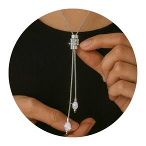 Colar Longo Prata com Pingente Cilíndrico de Cristais é um acessório moderno e elegante, perfeito para complementar produções casuais e sofisticadas. O pingente cilíndrico cravejado de cristais proporciona um brilho delicado, enquanto as hastes finas com pontas decoradas trazem movimento e charme ao visual. Seu design minimalista e versátil permite combinações com diferentes tipos de roupas, desde blusas lisas até vestidos elegantes, valorizando o colo com discrição e estilo.