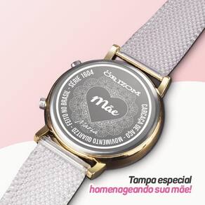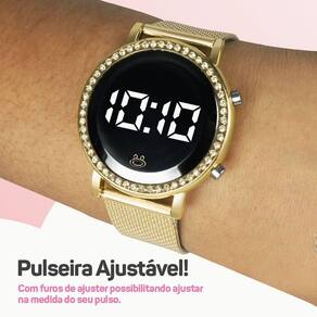 - Display: Digital, claro e fácil de ler. - Maquinário: Banhado, garantindo durabilidade e resistência. - Detalhes: Rodeado por pedrinhas de strass que adicionam um toque de elegância. - Pulseira: Silicone ajustável, oferecendo conforto e flexibilidade para ajuste perfeito. - Tampa Blindada: Design exclusivo com arte de coração e a inscrição MÃE, tornando-o um presente ideal para mães.