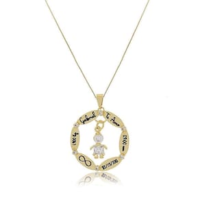 A àrvore da vida é um importante simbolo. Nesse lindo colar em formato de mandala, a àrvore com detalhes em zircônia fica ao meio. Em volta à ela, a personalização dos nomes. Pode ser personalizado os nomes dos integrantes de sua familia ou dos seus (suas) filhos (as). Folhado em Ouro 18 K.