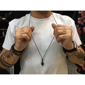 Leia com atenção antes de comprar Colar all black é uma ótima escolha para te deixar ainda mais estiloso. Temos diversos modelos e acessórios para completar o seu look. Material utilizado Cordão encerado coreano 1,5 mm e no pingente metal envernizado 3,1 cm . Cor da peça Preto all black Tamanho O cordão tem 43 cm e pode ser ajustado, ou seja, você pode ajustar de acordo com seu gosto. O pingente tem 3,1cm. Obs O valor é referente à 1 uma unidade. Cuidados com a peça: 1- evitar molhar frequentemente; 2- evitar produtos químicos em cima da peça. Marca: Bicudos Acessorios
