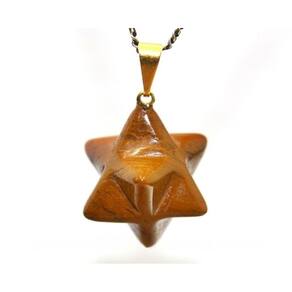 Pingente Merkabah pedra Jaspe Amarelo natural de garimpo, pedra com exelente lapidação em formato estrela merkabah. Montagem no prateado.