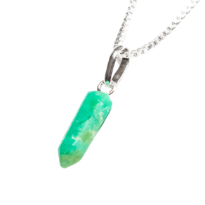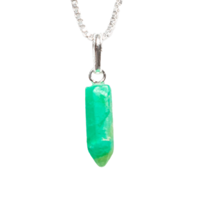 Pingente Micro Pontinha Pedra Crisoprásio boa qualidade, pedra natural de garimpo, lapidação artesanal montado Pino e Presilha na Prata 950, ideal para colar e pulseiras, já vai montado