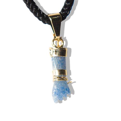 NOME DAS PEDRAS: Quartzo Azul COR DAS PEDRAS: Azul CORTE DAS PEDRAS: Figa Amuleto com Polimento Vibrado CLARIDADE DAS PEDRAS: Brilhoso MEDIDA DAS PEDRAS: 20 mm em média PESO TOTAL DA JOIA: 05 Quilates METAL: Niquelado dourado ORIGEM: Montagem Curvelo MG