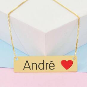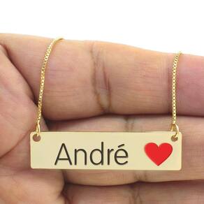 Colar Nome Personalizado Coração Resinado André Banhado Ouro 18K - 999001005