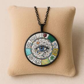 Colar Olho Místico com Pingente Redondo é um acessório cheio de simbolismo e estilo. O pingente circular traz o desenho de um olho centralizado envolto por padrões geométricos e elementos esotéricos coloridos, que remetem à proteção e espiritualidade. A corrente em tom preto contrasta perfeitamente com os detalhes vibrantes do pingente, criando um visual moderno e único. Ideal para quem gosta de acessórios místicos, alternativos ou deseja dar um toque de personalidade ao look.