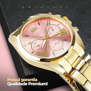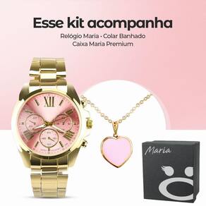 Colar Ouro + Caixa + Relogio Feminino Prova Dagua Banhado Conjunto Elegante Orizom Maria - Presente Perfeito! Relógio Analógico Feminino: - À prova d\'água, em aço inoxidável banhado a ouro dourado, para adicionar sofisticação ao seu visual.