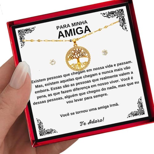 Trata-se de lindo colar composto, pingente árvore da vida e par de brincos (prata legítima 925 não acompanha brincos) + caixinha quadrada com dedicatória.