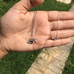 Colar Patuá Fé Esperança Caridade Prata 925 Na prata de verdade é o lugar onde você encontra esse lindo colar em prata 925. No seu modelo mais sofisticado, essa gargantilha acompanha um lindo pingente bem estiloso. Especificações da corrente: tamanho da corrente: 45cm Modelo da corrente: veneziana Peso da corrente: 1.3g Largura da corrente: 1,1mm Fecho da corrente: boia Material da corrente: prata Teor: 925 especificações do pingente: material do pingente: prata Teor: 925 itens inclusos: 01 corrente veneziana 01 pingente pata embalagens: 01 certificado e garantia permanente 01 embalagem apresentável e harmoniosa. Todas as nossas peças são de prata legítima, compre e tenha certeza de receber uma joia com duração para o resto da vida ao contrário de uma bijuteria, a prata 925 é um material que tem garantia e durabilidade permanente igualmente o ouro 18k. Nossas pratas tem certificado de autenticidade reconhecidos em todo mundo, você pode levar em qualquer joalheria para efetuar os testes e comprovar a autenticidade da prata. Tudo que sai do nosso estoque é devidamente embalado para presente proporcionando a melhor experiência de compra para nossos clientes. Aguardamos a sua compra. Lummi commerce - a luz faz parte da sua essência Marca: Mga-Br