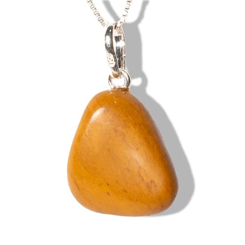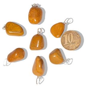 Pingente de Pedra Natural Jaspe Amarelo - Pedrinha Rolada com Cordão Ajustável