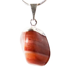 NOME DA PEDRA: Agata Cornalina COR DA PEDRA: Laranja, marrom e branco (Foto Ilustrativa) CORTE DA PEDRA: Rolado e polido CLARIDADE DA PEDRA: Translucido MEDIDA DA PEDRA: 15 a 20 Milimetros Aproximadamente (Varia de Acordo com Estoque) CASTOAÇÃO: Envolto com presilha prateada PESO TOTAL DA JOIA: 5 gramas aproximadamente (Varia de Acordo com Estoque)