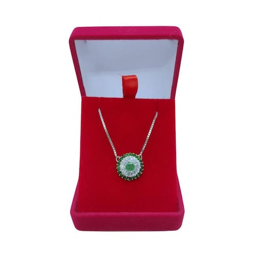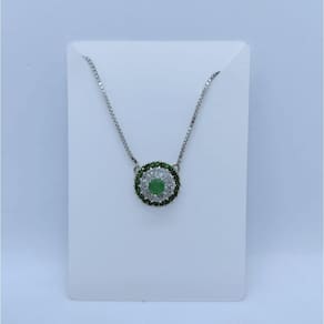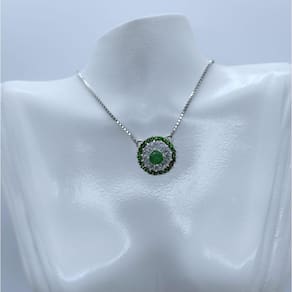 Colar Pedras Verdes cravejado de zircônia prata 925 Descrição: Modelo: colar prata 925 com banho em ródio e pedra natural com zircônia Referência: grl-001 Dimensão: Diâmetro pingente: 10mm Comprimento correte: 45cm