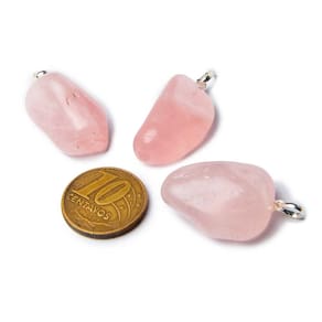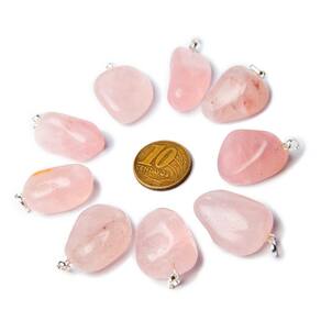 Pingente Pedrinha Quartzo Rosa Natural Montagem na Prata 950 ( PRATA DE LEI) com Pino e Perinha na Pedra, origem garimpo com lapidação e montagem manual