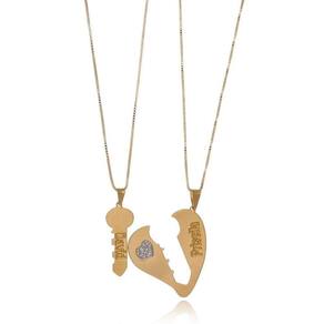 Personalize o nome de vocês na chave e no colar, para que mesmo quando estiverem longe possam se sentir próximos um do outro.