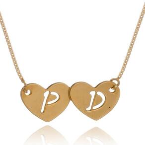 Um lindo modelo de colar personalizado de iniciais vazada em corações, é puro charme e encanto.