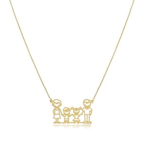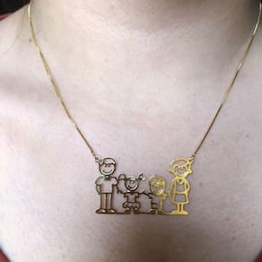 Esse colar é a representação do amor. Ele possibilita que você personalize como quiser a sua família. Pode personalizar a quantidade de pais e filhos, e o gênero de cada um. Os personagens são vazados, o que traz ainda mais destaque e delicadeza para a peça. Folhado em Ouro 18 K.