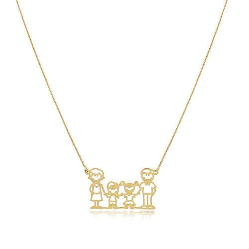 Esse colar é a representação do amor. Ele possibilita que você personalize como quiser a sua família. Pode personalizar a quantidade de pais e filhos, e o gênero de cada um. Os personagens são vazados, o que traz ainda mais destaque e delicadeza para a peça. Folhado em Ouro 18 K.