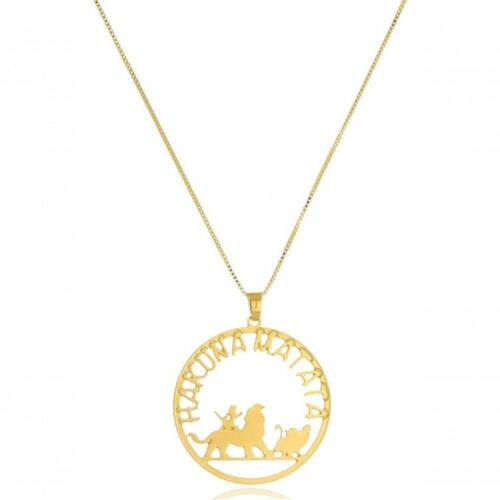 Colar Personalizado Hakuna Matata Folheado Em Ouro 18k Para você que ama o universo da Disney esse é o acessório ideal, nesse colar temos o Simba, Timão e Pumba junto da frase Hakuna Matata.Esse modelo vai levar a magia do mundo encantado para onde você for e te deixará ainda mais linda.Esse colar sem dúvidas é uma opção de presente, pois é um acessório único e com um significado especial. A pessoa que receber com certeza irá se sentir muito amada e querida.Compre agora mesmo e tenha uma peça exclusiva e linda em sua coleção. CURIOSIDADE: Hakuna significa não há e Matata significa problemas, ou seja, é uma expressão usada no filme para dizer que não tem problema e que tudo está/vai ficar bem. Os seus problemas você deve esquecer. Isso é viver, é aprender. Hakuna Matata! I M P O R T A N T E!!!!!! O PRAZO DO ENVIO DOS PERSONALIZADOS É EM TORNO DE 30 DIAS MAIS O PRAZO DE ENTREGA DOS CORREIO: EX: 30 dias do prazo para a confecção do produto + 4 dias do prazo dos correios = 34 dias de prazo para ser entregue ESSE ACESSÓRIO É HIPOALERGÊNICO E NÍQUEL FREE DADOS TÉCNICOS: MATERIAL: Banhado em Ouro 18k DICA: Para manter sua peça sempre com brilho evite o contato dela com lugares úmidos e molhados, exemplo piscinas, mar e durante o banho. GARANTIA: 1 ANO Ean: 7898707884954