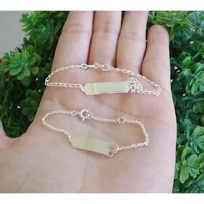 Com tamanho de 10cm + extensor, essa pulseira se ajusta perfeitamente aos pulsos dos bebês, garantindo conforto e segurança. A plaquinha tem 2,5cm de largura e 0,6mm de altura, proporcionando um design delicado e charmoso. Com peso aproximado de 1,0g, essa pulseira é leve e não causa desconforto.