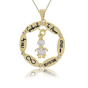 Colar Personalizado Mandala Com Dados Nascimento Folheado Em Ouro 18k Tipo:duas Crianças