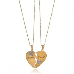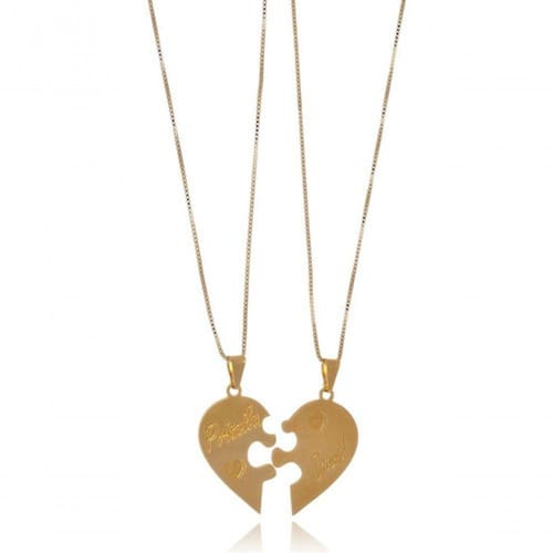 Colar Personalizado Metades Que Se Completam Folheado Em Our Esse colar foi pensando, especialmente, para aquele casal que as vezes viaja sozinho e sente saudades do namorado.Já pensou em levar um pedaço dele onde você for?Com o colar metades que se completam vocês podem ir em qualquer e sentir a presença um do outro sabendo que o sentimento é mutuo. I M P O R T A N T E!!!!!! Antes de finalizar a compra, no campo observações, é necessário adicionar o nome que deseja personalizar em sua pulseira e se será tamanho infantil!EX.: Priscila e David O PRAZO DO ENVIO DOS PERSONALIZADOS É EM TORNO DE 30 DIAS MAIS O PRAZO DE ENTREGA DOS CORREIO:EX: 30 dias do prazo para a confecção do produto + 4 dias do prazo dos correios = 34 dias de prazo para ser entregue Em caso de dúvidas estaremos auxiliando no suporte de dúvidas. ESSE ACESSÓRIO É HIPOALERGÊNICO E NÍQUEL FREE DADOS TÉCNICOS: MATERIAL: Banhado em Ouro 18k DICA: Para manter sua peça sempre com brilho evite o contato dela com lugares úmidos e molhados, exemplo piscinas, mar e durante o banho. GARANTIA: 1 ANO.