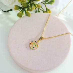 O Colar Pingente Árvore da Vida com Zircônias Coloridas Folheado a Ouro 18k é um verdadeiro tesouro em forma de acessório.