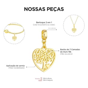 Colar Pingente Árvore da Vida Coração Banhado a Ouro 18k - COLAR: 45 cm
